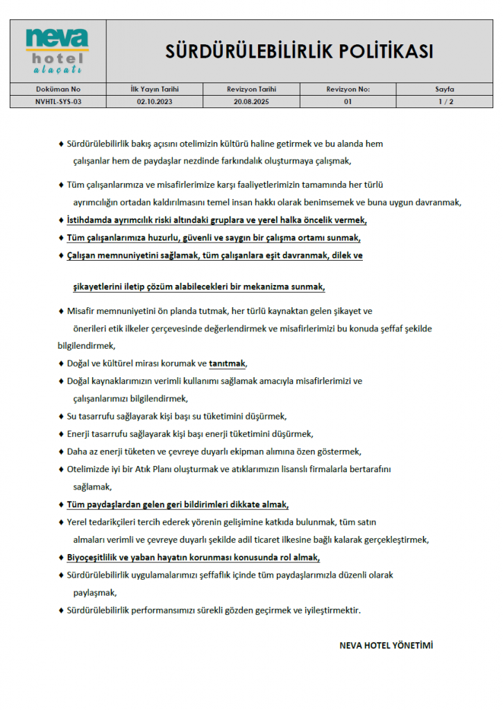 SÜRDÜRÜLEBİLİRLİK POLİTİKAMIZ